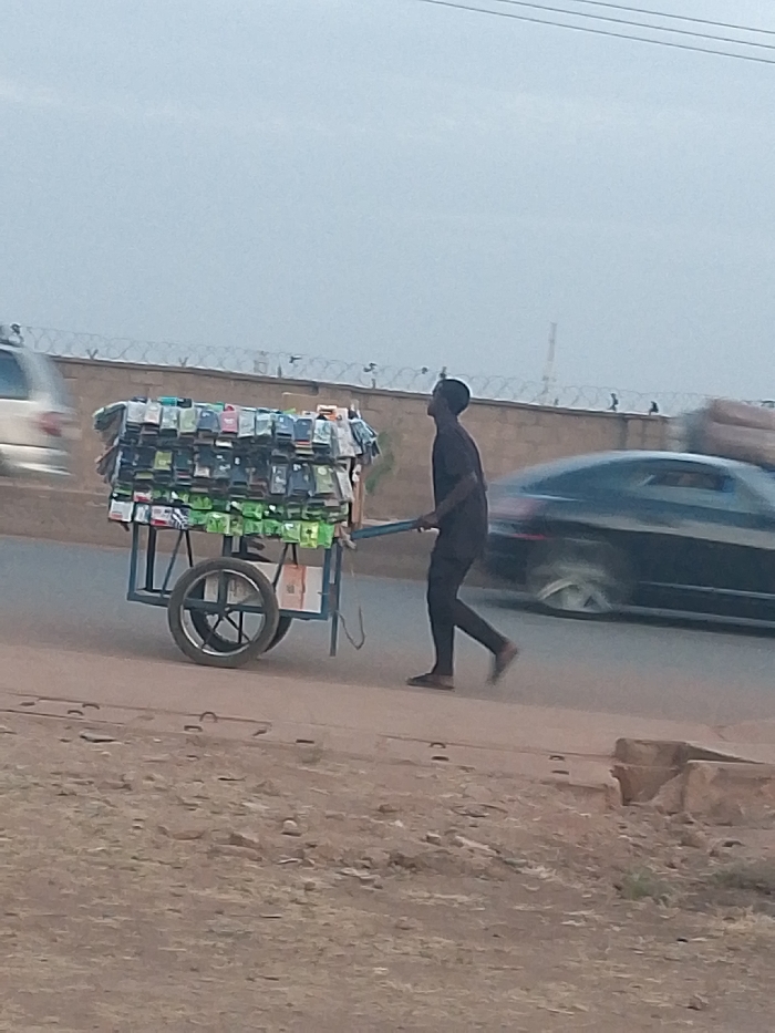 - "A man pulls a cart loaded with merchandise, likely phone accessories, along a road" by FM-AqNa62, licensed under CC BY 4.0