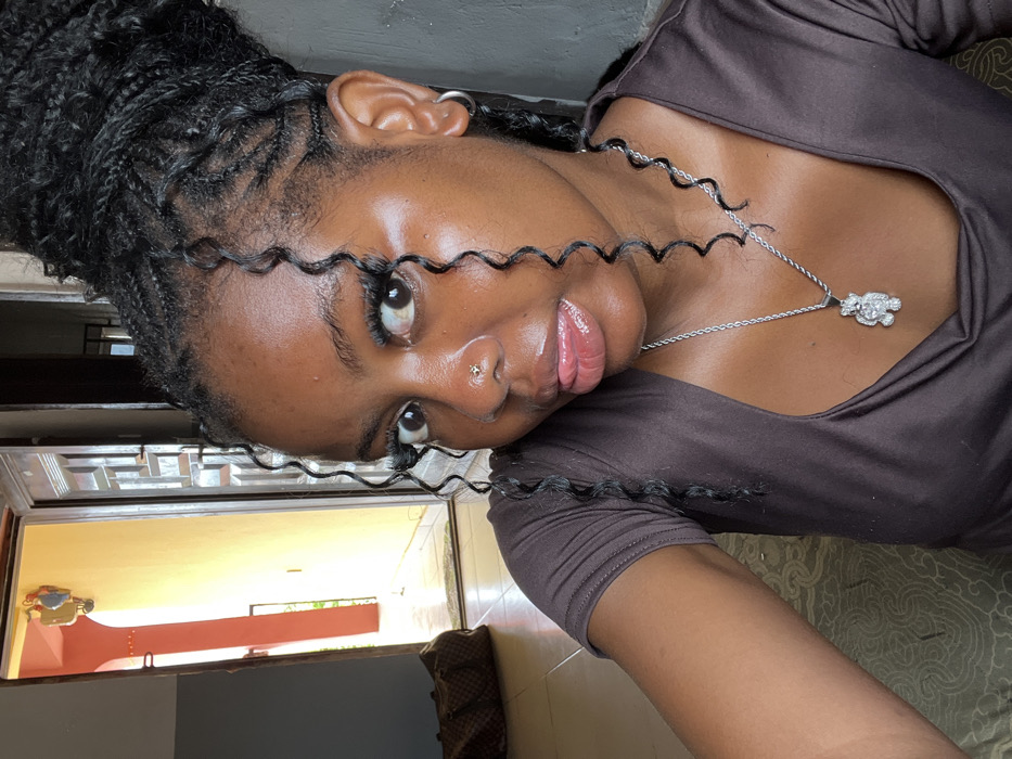 A close-up selfie captures a young Black female, identified as being indoors in Gbongan, Nigeria