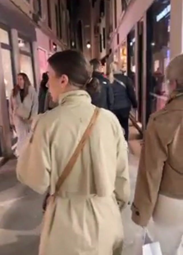 - ". The video shows a woman walking down a crowded street in what appears to be a European city. The street is lined with shops, and it is nighttime. The woman is wearing a tan trench coat and carrying a purse. She is looking at her phone. She turns and looks directly at the camera, smiles, and speaks. The audio indicates that she speaks in Polish. Several other people are walking on the street, some in front of her and some behind her. The street appears to be well-lit." by FM-yfpiR2, licensed under CC BY 4.0