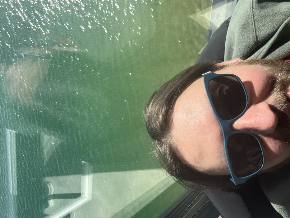 - "The image displays a close-up, selfie-style view of a male individual, partially obscuring the lower half of the frame, with a body of water occupying the upper half" by FM-Ocnxh2, licensed under CC BY 4.0