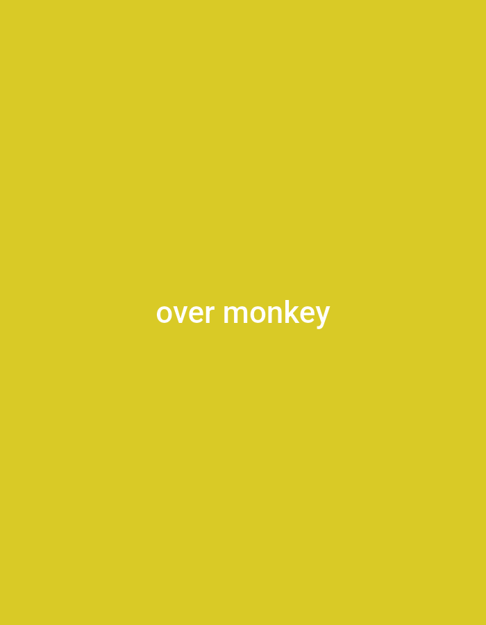 The image displays a uniform, solid yellow background. Centered on this background is the text "over monkey," rendered in white, lowercase, sans-serif characters. No other visual elements, such as individuals, objects, specific geographic features, or environmental details, are present within the frame. The entire depicted scene consists solely of this graphical text on a monochromatic field, understood to be located within the city of Koulamoutou, Gabon.