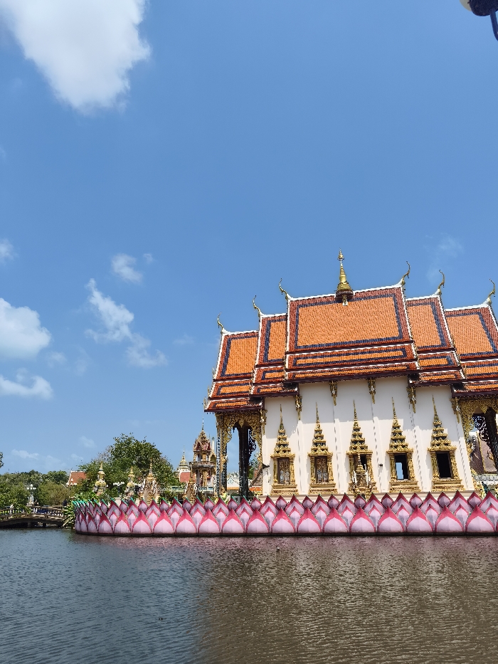 - "An ornate Thai temple stands on a body of water, seemingly floating on a lotus flower platform" by FM-H4hzl2, licensed under CC BY 4.0