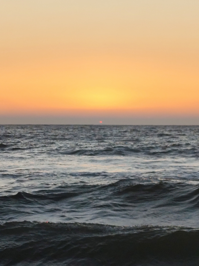 This image presents a seascape captured at sunset or sunrise in Querim, India