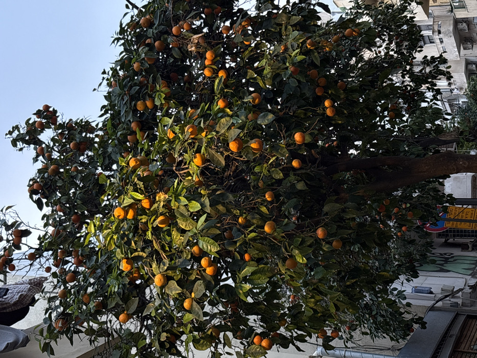 - "The image displays a large, mature citrus tree heavily laden with numerous ripe, round, orange-colored fruits, consistent with oranges, set against a clear blue sky" by FM-3J1Ls2, licensed under CC BY 4.0