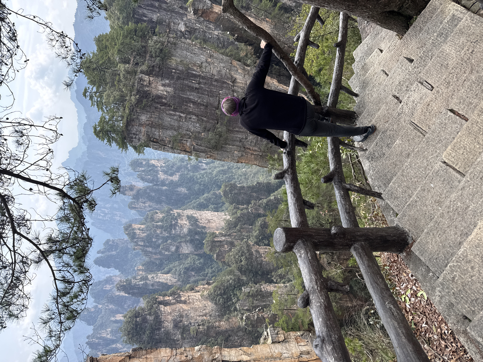 - "A sole individual, viewed from behind, stands on a descending flight of rough-hewn light gray stone stairs within the Wulingyuan Scenic and Historic Interest Area in Wulingyuan, China" by FM-7eaFY2, licensed under CC BY 4.0
