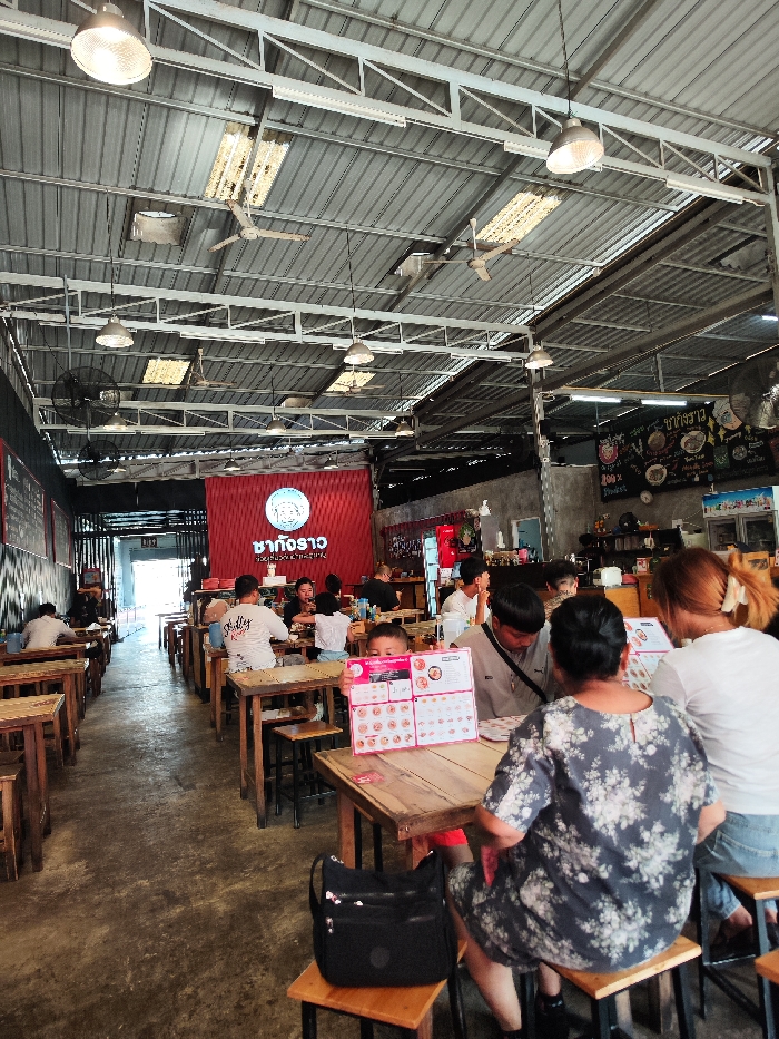 The image depicts the interior of the Cha Kang Rao restaurant, located at 167 175 Thung Kha Rd, Talat Yai, Mueang Phuket District, Phuket City Municipality, Thailand