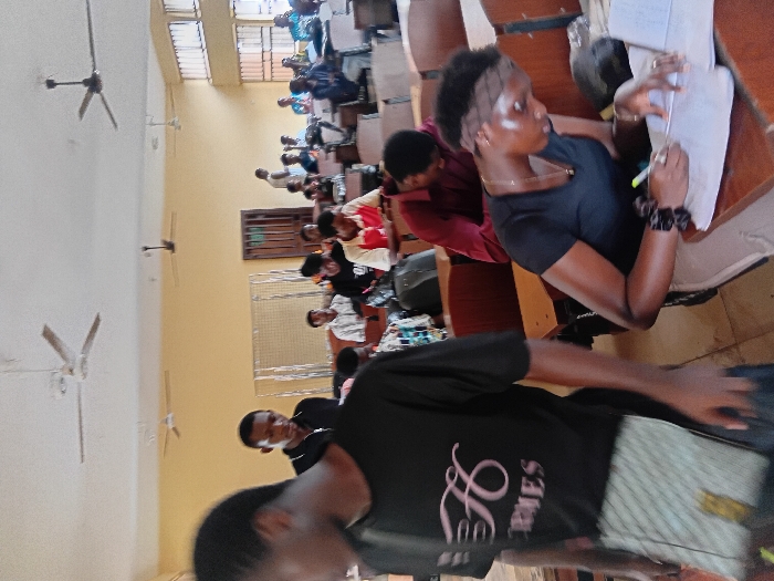 This image captures an indoor classroom or lecture hall scene in Ukukwa, Nigeria