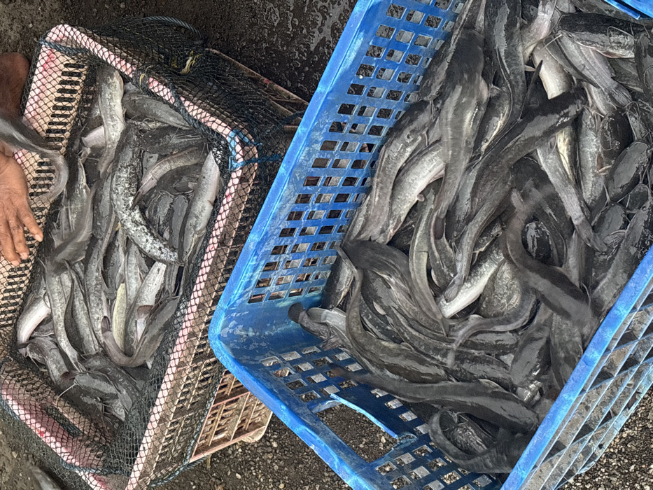 - "The image depicts a close-up, high-angle view of two plastic crates brimming with numerous live or freshly caught catfish in Tambakrejo, Indonesia" by FM-pZJkE3, licensed under CC BY 4.0