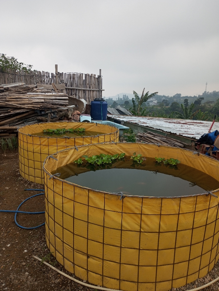 - "The image displays an outdoor scene in Sindangjaya, Indonesia, featuring two circular aquaculture tanks" by FM-V7J863, licensed under CC BY 4.0
