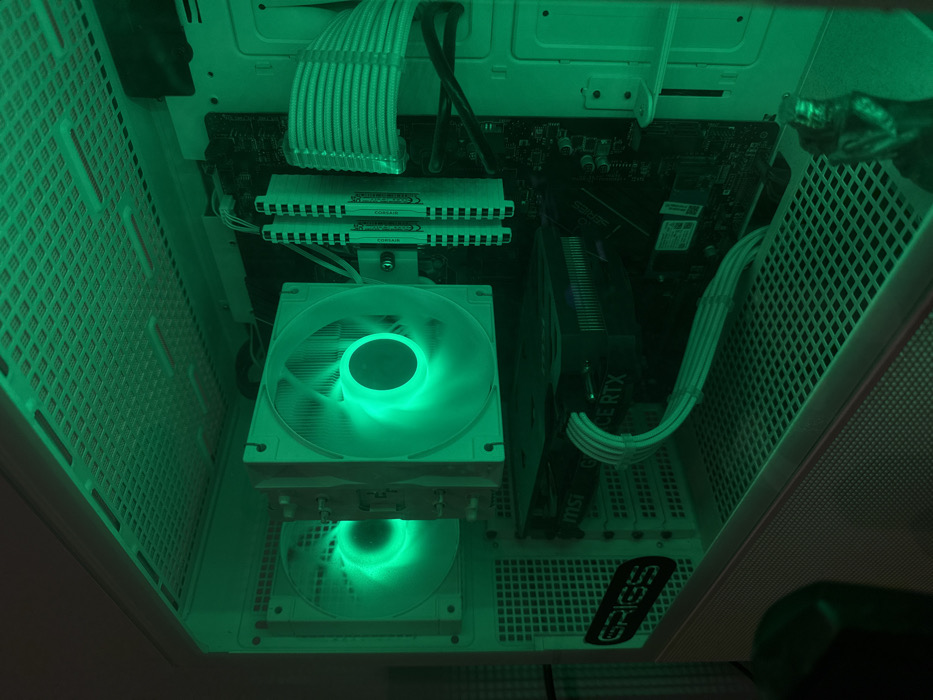 - "The image displays the interior components of a desktop computer tower case, illuminated predominantly by green light" by FM-pq4On2, licensed under CC BY 4.0