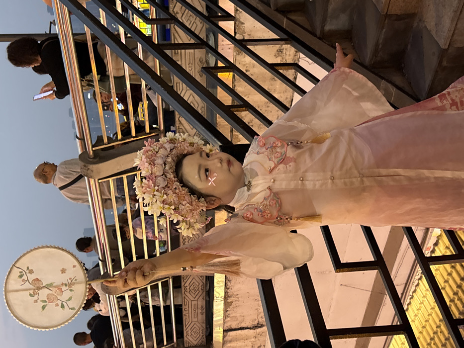 - "An image taken in 江北城街道, China, depicts a young child dressed in elaborate traditional attire posing on a stone staircase at dusk" by FM-hd42B3, licensed under CC BY 4.0
