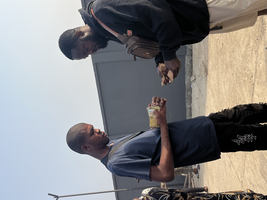 - "An outdoor scene in Gbonkomakent, Sierra Leone, depicts two adult males engaged in a monetary exchange or count under a clear, bright sky" by FM-w5W832, licensed under CC BY 4.0