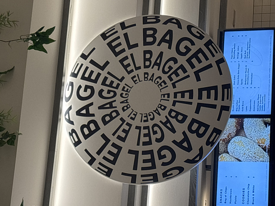 - "The interior of an "El Bagel" establishment in Winchester, United States of America, is depicted from a low-angle perspective, focusing on an overhead circular sign and digital menu boards below" by FM-mLRHH2, licensed under CC BY 4.0