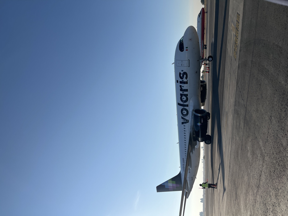 The image captures an airport tarmac in Huejotzingo, Mexico