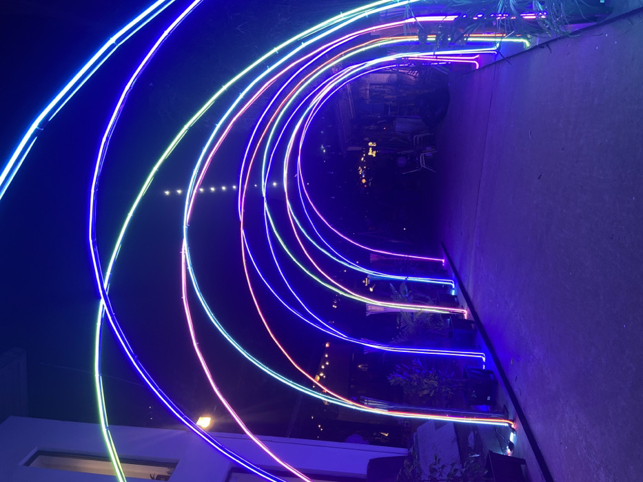 - "The image displays an outdoor, paved pathway illuminated at night by a series of approximately nine semi-circular arches constructed from flexible LED light strips" by FM-BeFBg1, licensed under CC BY 4.0