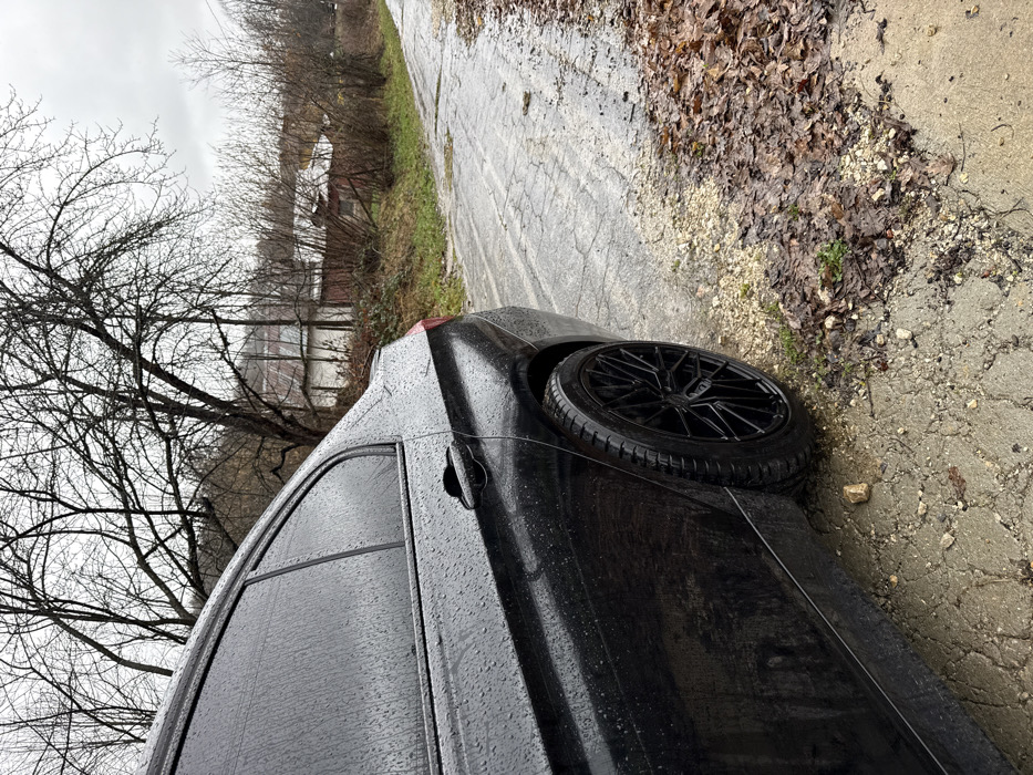 - "A dark-colored sedan, likely black, is parked on the right side of a narrow, wet, and cracked asphalt road in Peyovstsi, Bulgaria" by FM-vEwE92, licensed under CC BY 4.0