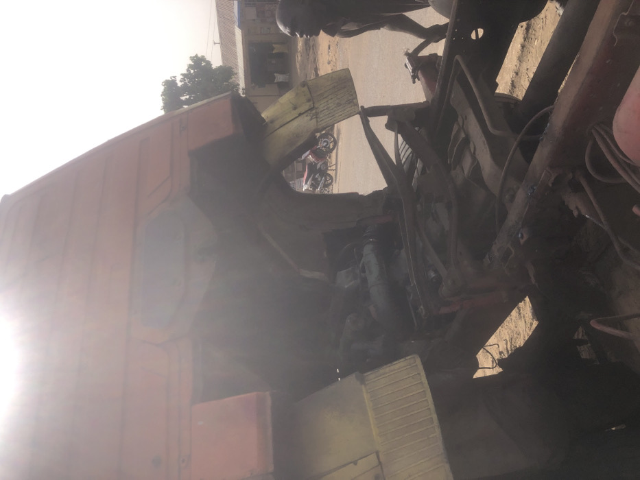 - "The scene depicts a large, orange-red heavy-duty truck with its cab tilted forward, exposing the engine bay and chassis for maintenance or repair" by FM-IhhyI2, licensed under CC BY 4.0