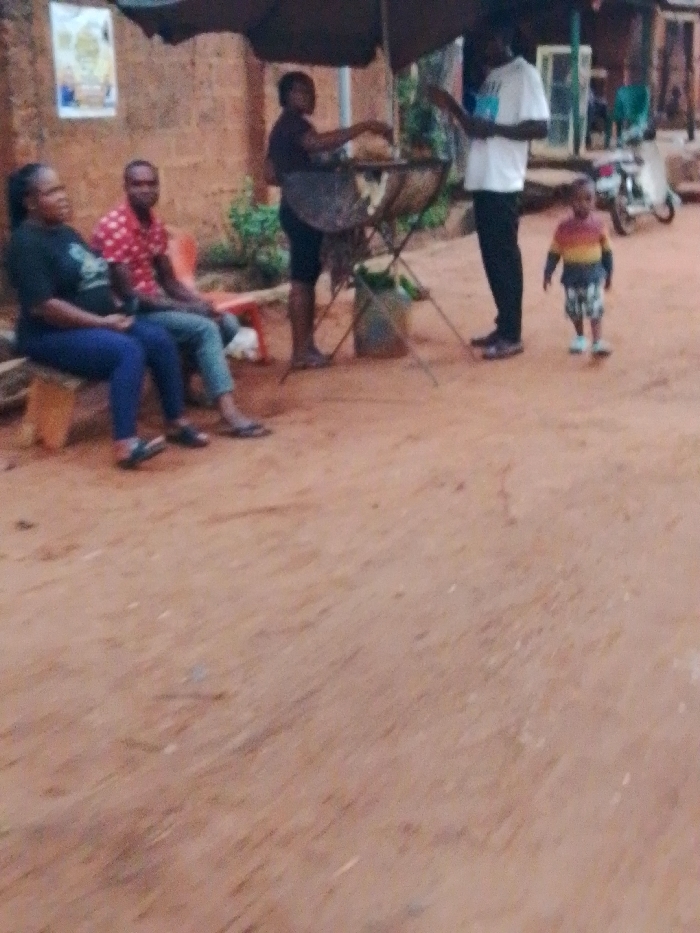 - "The scene depicts an outdoor commercial or social gathering in Onitsha, Nigeria, occurring on an unpaved, reddish-brown dirt ground" by FM-70D6s1, licensed under CC BY 4.0
