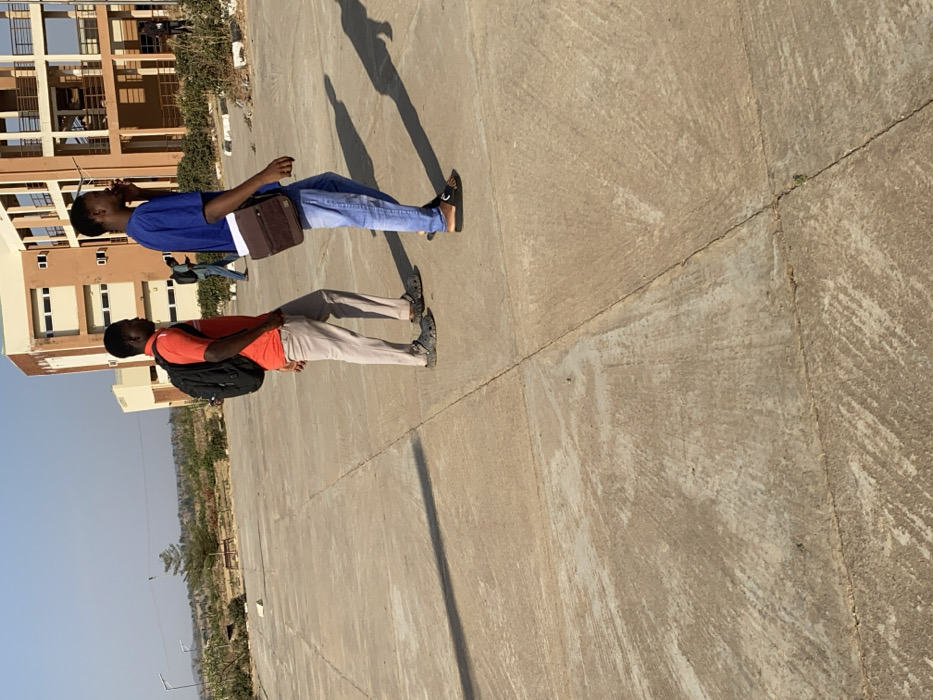 The image depicts an outdoor daytime scene on a modern campus in Unknown, Nigeria