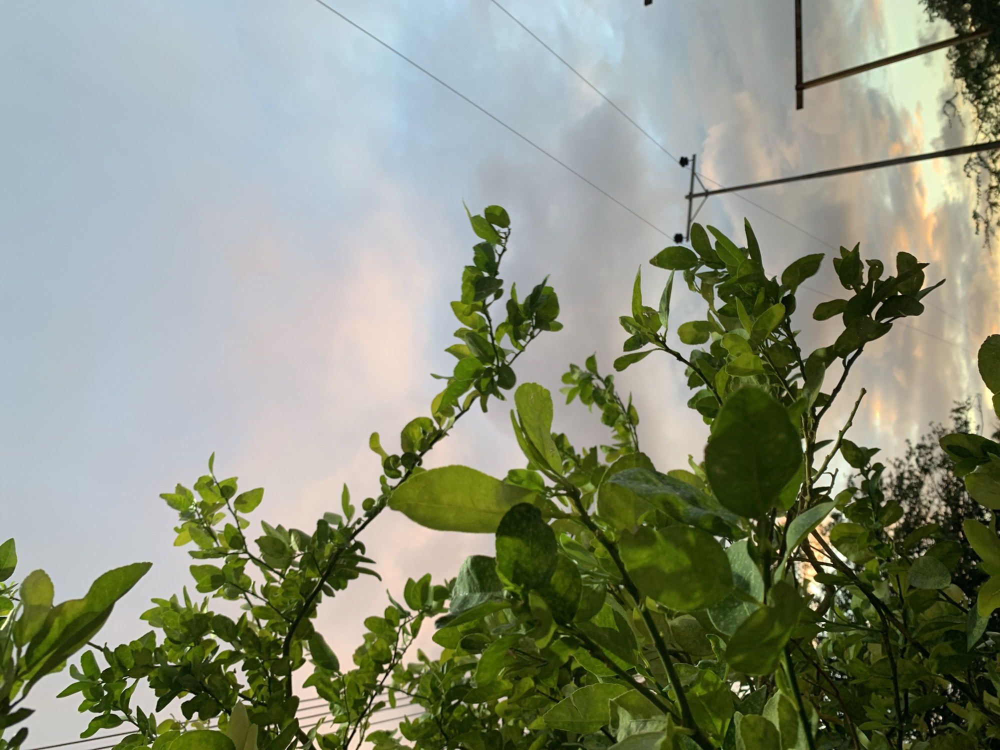 - "green leafy branches in the foreground with a view upwards towards a sky with light-colored clouds" by FM-ybrIW2, licensed under CC BY 4.0