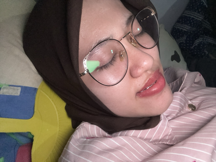 In Kebonsari, Indonesia, a female individual is depicted in a close-up, horizontal orientation, appearing to be at rest or asleep indoors