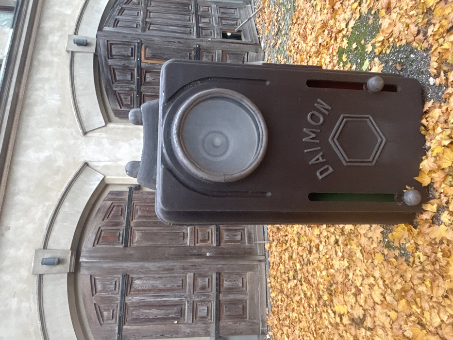 - "The image depicts a large, dark brown, stylized sculpture resembling a vintage flashlight or camera, centrally positioned in the foreground" by FM-Cr3ZF2, licensed under CC BY 4.0