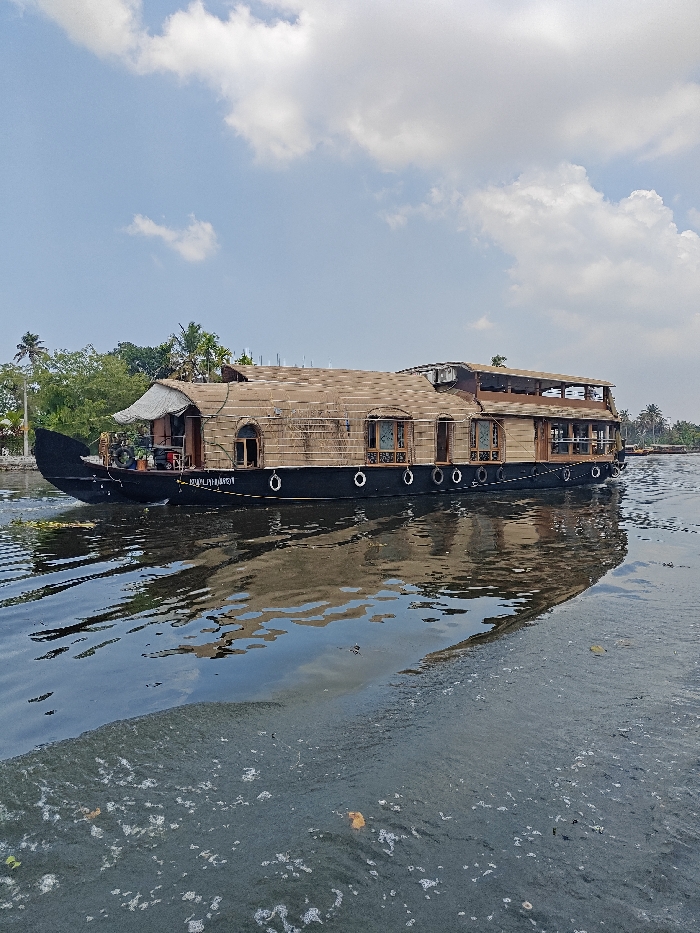 - "A large houseboat is depicted traversing a body of water in Alappuzha, India, under a partly cloudy sky" by FM-sfCCG2, licensed under CC BY 4.0