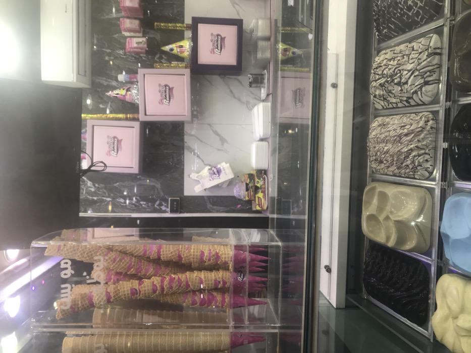 This image depicts the interior of an ice cream shop, located in Al-Qanawat Municipality, Syria