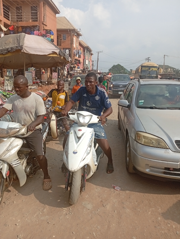 - "The image depicts a bustling street scene in Nnewi, Nigeria, characterized by an unpaved, reddish-brown dirt road" by FM-gopco1, licensed under CC BY 4.0
