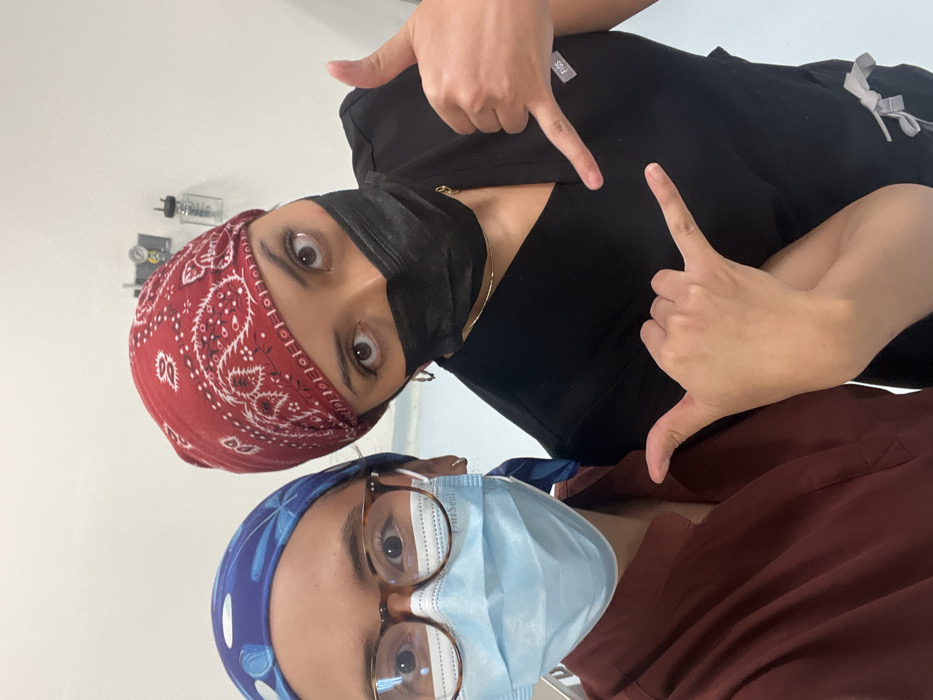 Two individuals are depicted in a close-up, selfie-style photograph taken within a medical facility in Mexico City, Mexico