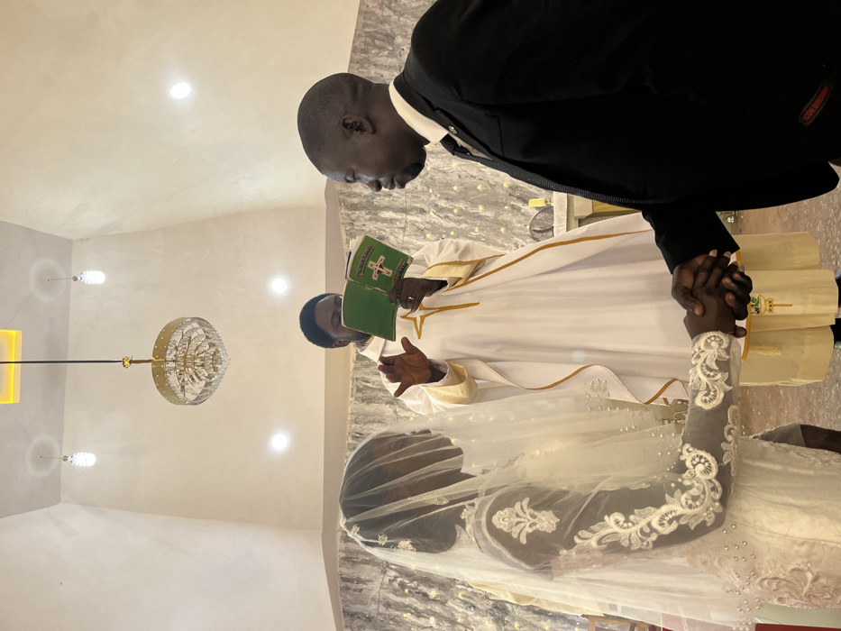 Inside a religious building in Ajikemai, Nigeria, a wedding ceremony is captured