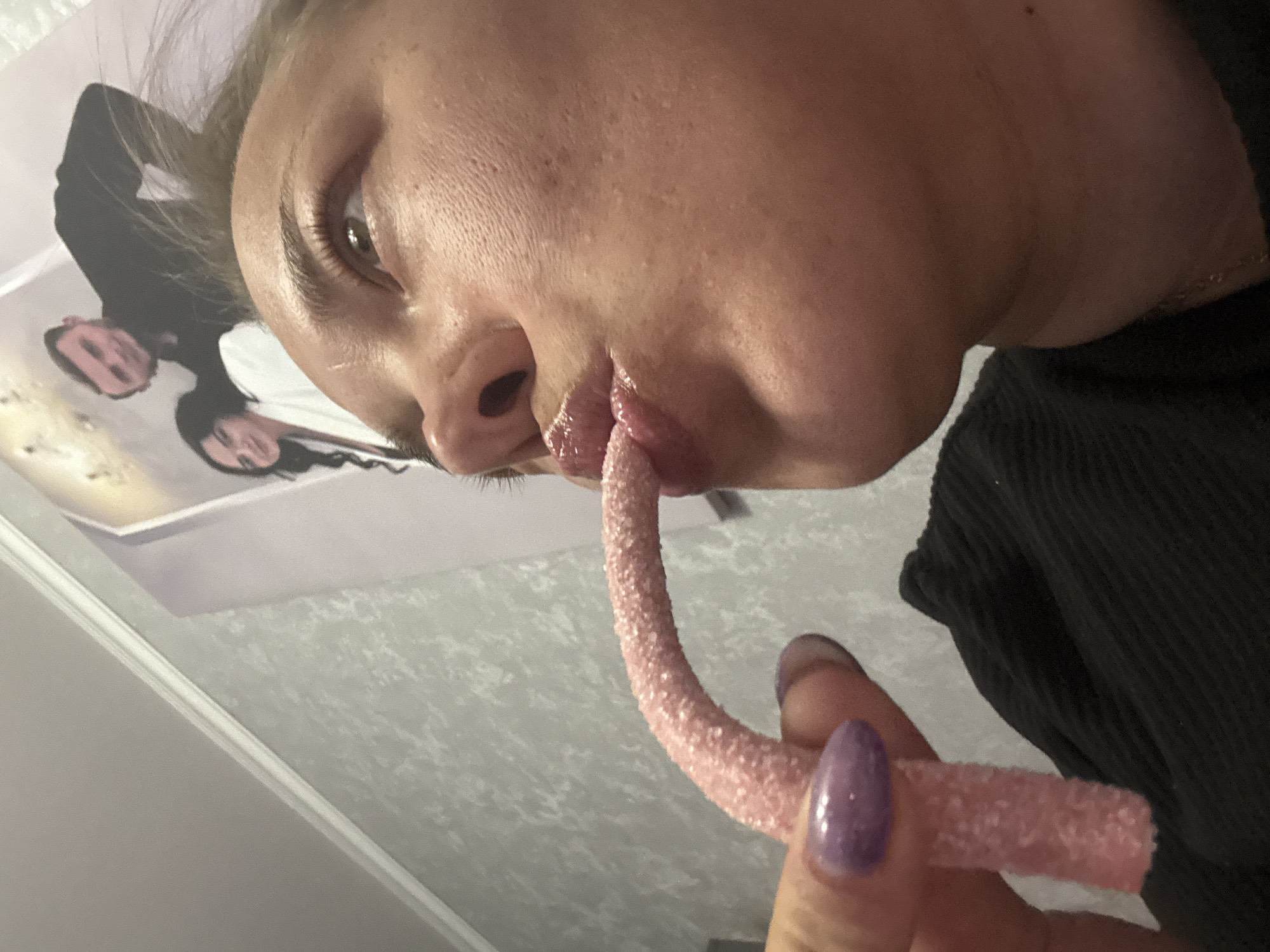 - "close-up, tilted perspective of a person holding a pink, sugar-coated candy near their mouth" by FM-VJm8n1, licensed under CC BY 4.0