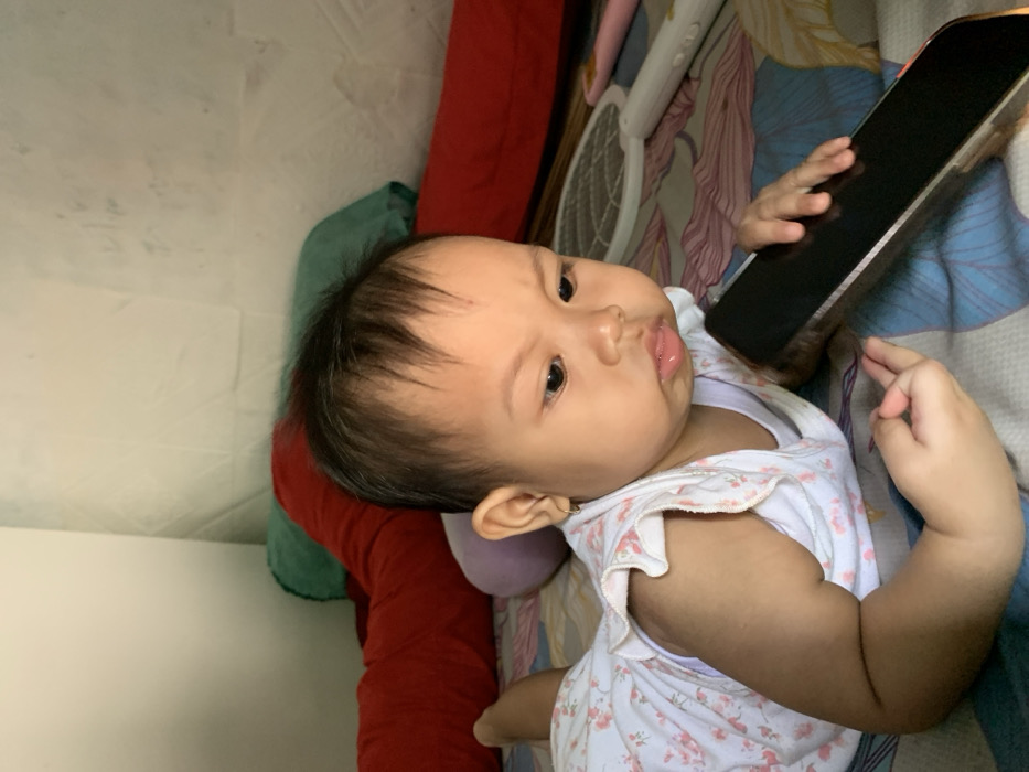 - "A baby lies on a patterned bed" by FM-jFYoF3, licensed under CC BY 4.0