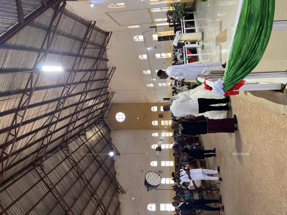The image captures a wedding ceremony in progress inside a church located in Kuru Karama, Nigeria