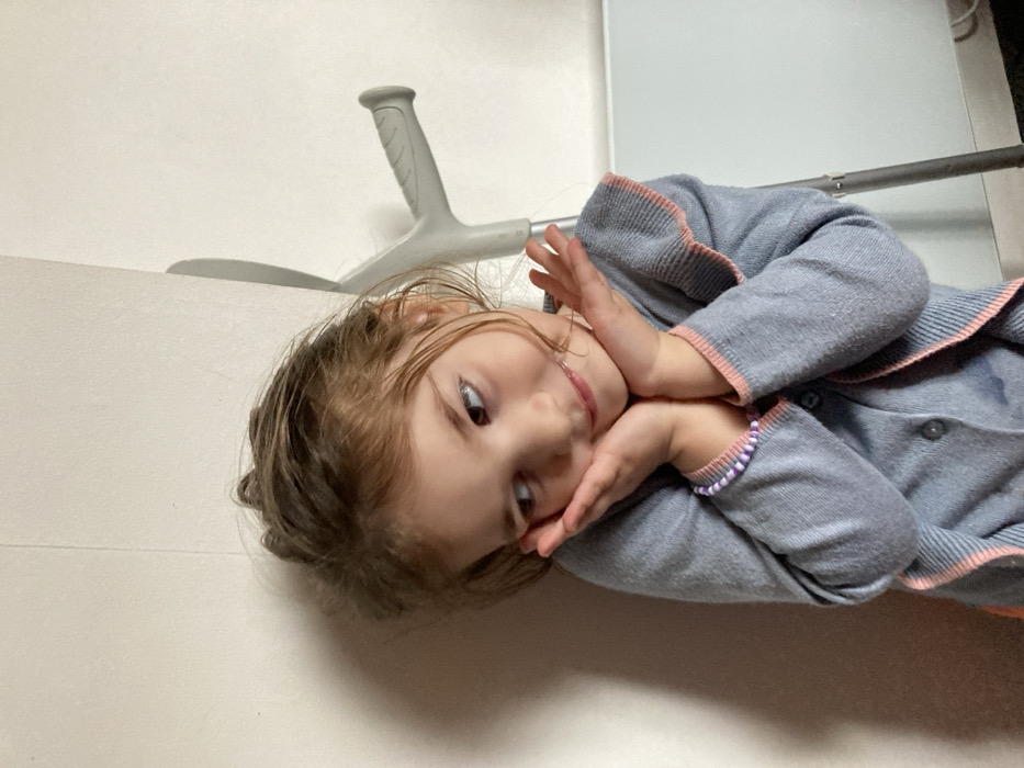 The image depicts a young girl, approximately 3-5 years old, with light brown hair and a light complexion