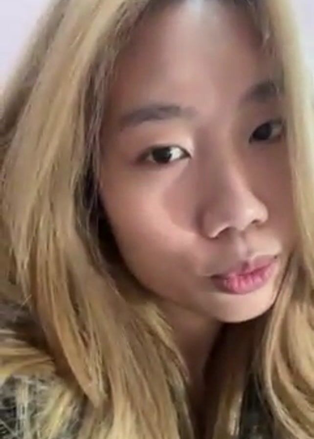 A close-up shot shows a young woman with light brown hair looking directly at the camera