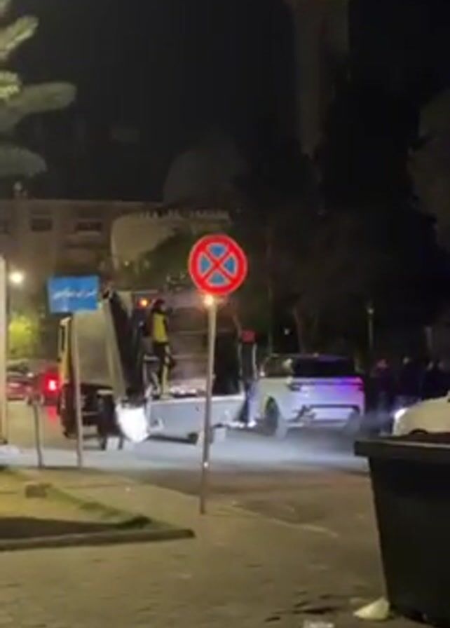 - "At night, a garbage truck is parked near a street corner with flashing lights" by FM-WnN6r1, licensed under CC BY 4.0