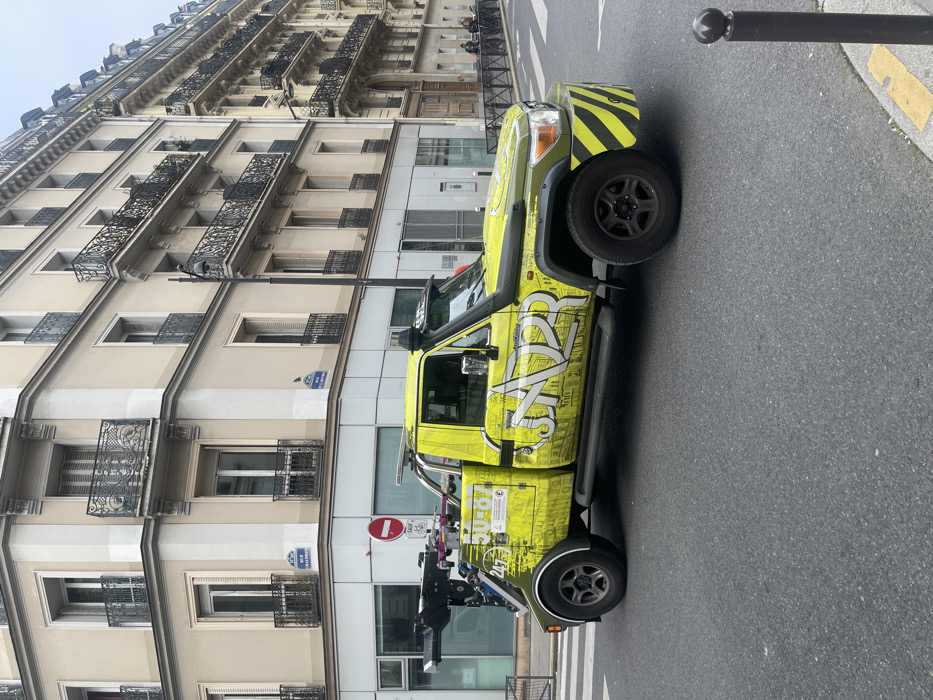 - "A highly customized, lime green pickup truck is positioned on an asphalt street at the intersection of Rue Chabrol in Paris, France" by FM-0GGC43, licensed under CC BY 4.0