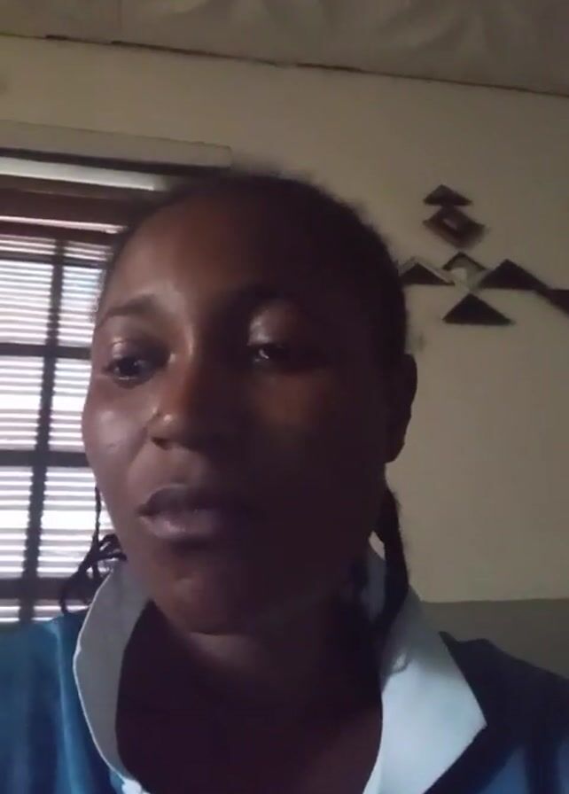 A woman with dark skin and braided hair is centered in the frame, looking directly at the camera