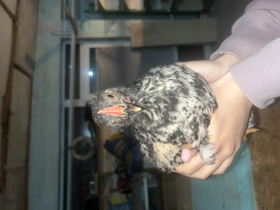- "This image, taken in Asenovgrad, Bulgaria, presents a direct frontal view of a chicken held by an individual's hands within an indoor setting" by FM-Wb4f32, licensed under CC BY 4.0
