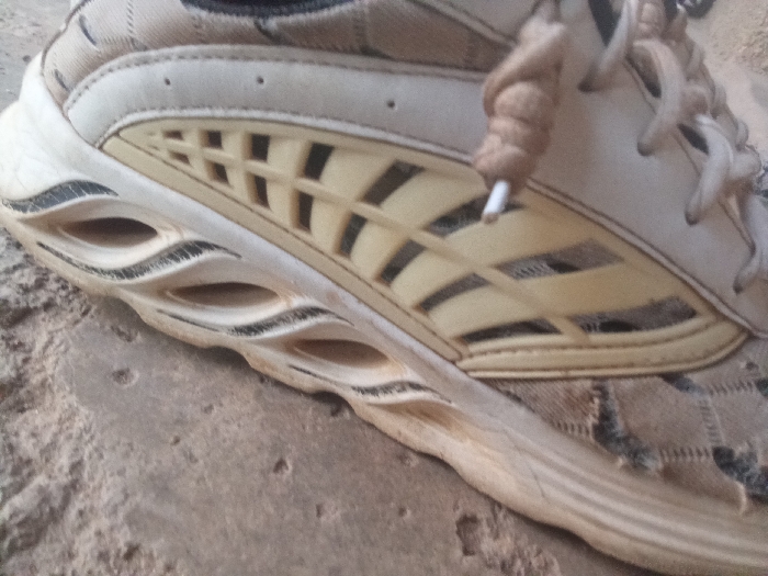 - "A close-up shows a used, off-white sneaker" by FM-Ksp2S2, licensed under CC BY 4.0