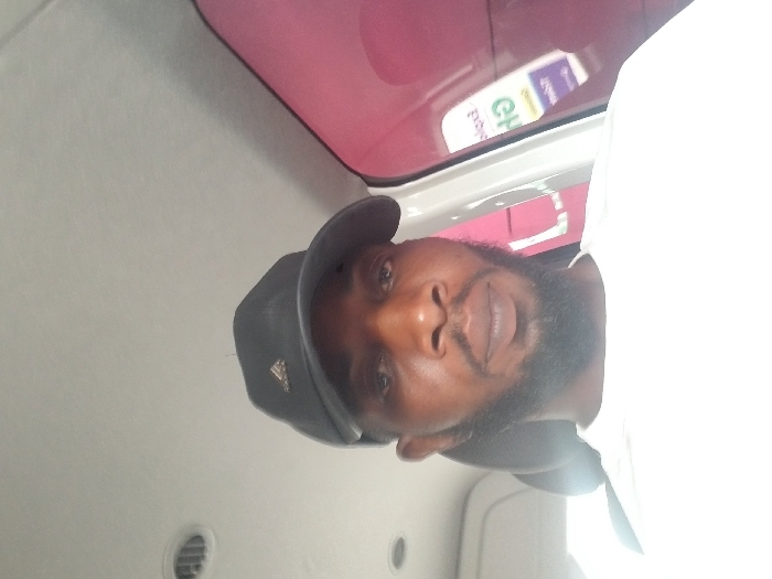 The image depicts a single male individual seated within the interior of a vehicle, described as being in Ajaokuta, Nigeria