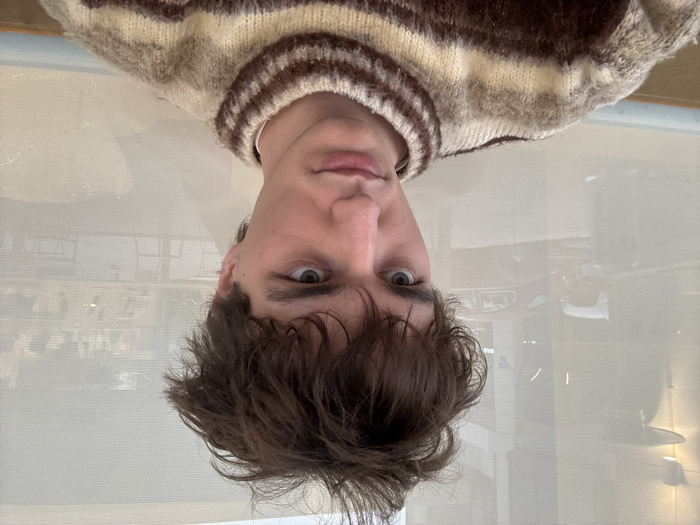 - "A person with short, brown hair and light eyes, wearing a brown and beige striped sweater, is looking directly at the camera with a slightly surprised expression" by FM-zvx3E2, licensed under CC BY 4.0