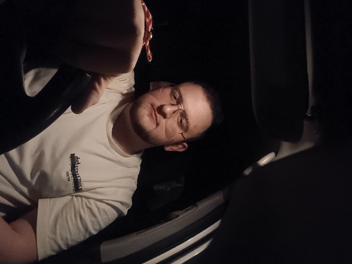 - "An adult male is seated inside a vehicle, illuminated by an internal light source, at night or in a poorly lit environment" by FM-gF0WW2, licensed under CC BY 4.0
