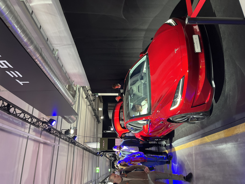 - "An indoor exhibition space, confirmed to be **Messe Zürich, Switzerland**, displays a bright red Tesla Model 3" by FM-eWTi73, licensed under CC BY 4.0