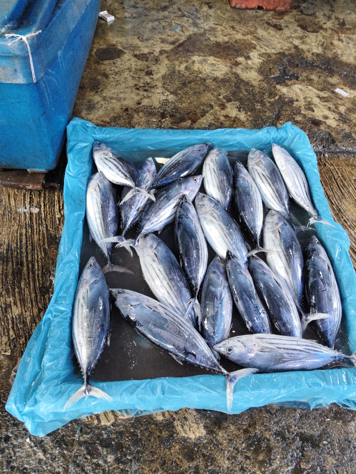 - "This image, taken in Tuha Gp Gajah, Indonesia, presents an overhead view of approximately 25-30 freshly caught, whole skipjack tuna or a similar striped tuna species" by FM-bZrK33, licensed under CC BY 4.0