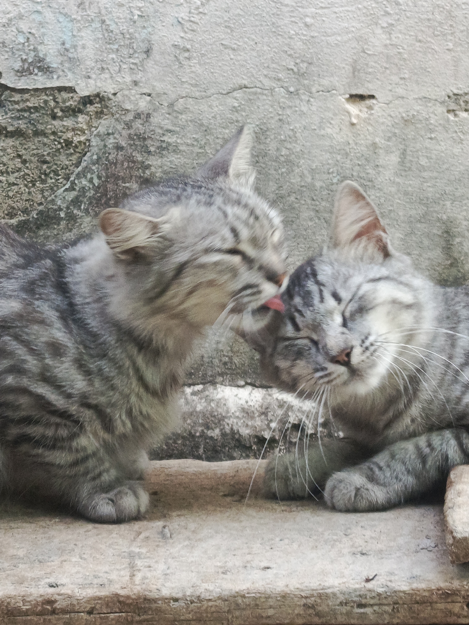 - "The image displays two grey tabby cats situated on a concrete surface against a textured, light-colored wall in Tinaco, Venezuela" by FM-WXIIo1, licensed under CC BY 4.0