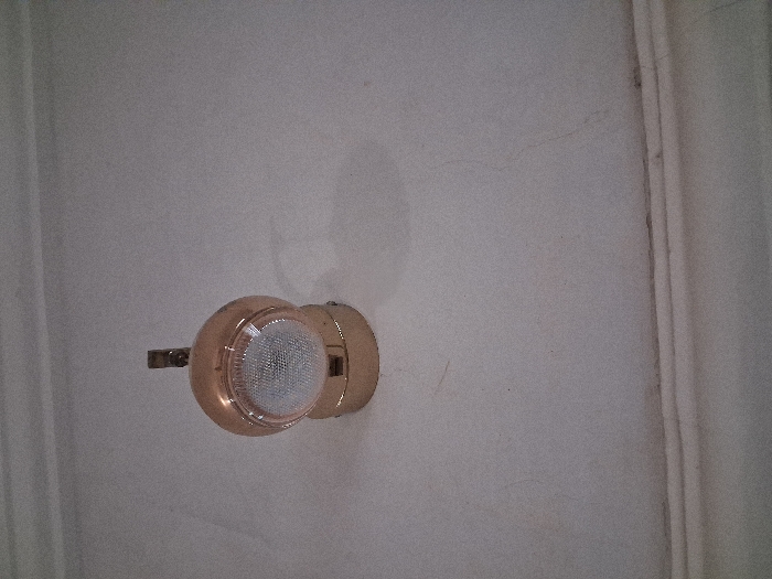 - "A single, round, coppery-metallic spotlight fixture with a textured, multi-component light source, consistent with an LED array, is affixed to a light-colored, possibly off-white, wall surface" by FM-IiHJp1, licensed under CC BY 4.0