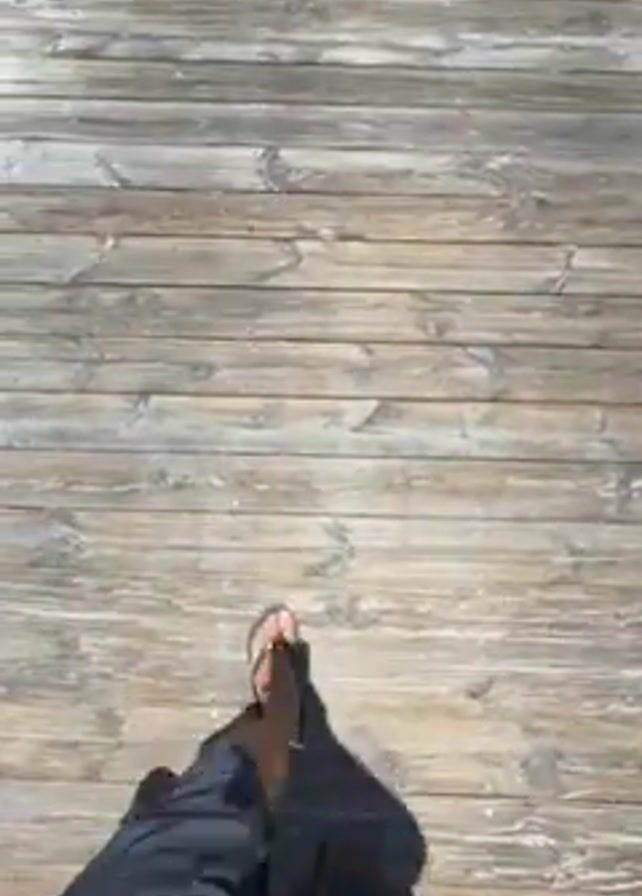 - "A person wearing black pants and flip-flops walks down a wooden pier surrounded by bright turquoise water" by FM-RjPGA3, licensed under CC BY 4.0