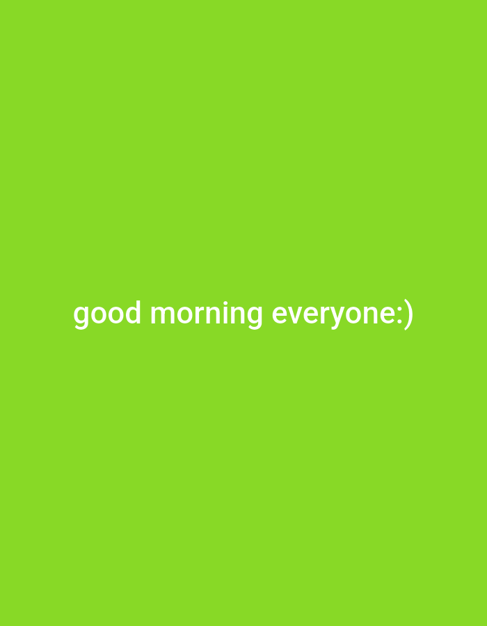 The image is a digital graphic featuring a solid, uniform lime green background. White, sans-serif text is centered horizontally and positioned slightly below the vertical midpoint of the frame. The text reads: "good morning everyone:)". No people, physical objects, or discernible environmental features are present. The visual content does not contain any information to identify a specific geographical location, including the city of Bogor, Indonesia.